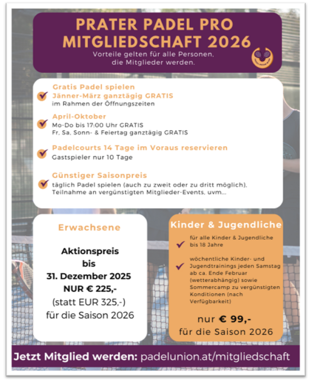 - JUGEND nur 99 € (bitte Ausweiskopie an prater@padelunion.at direkt senden) Jugendmitgliedschaft bis einschließlich Jahrgang 2008