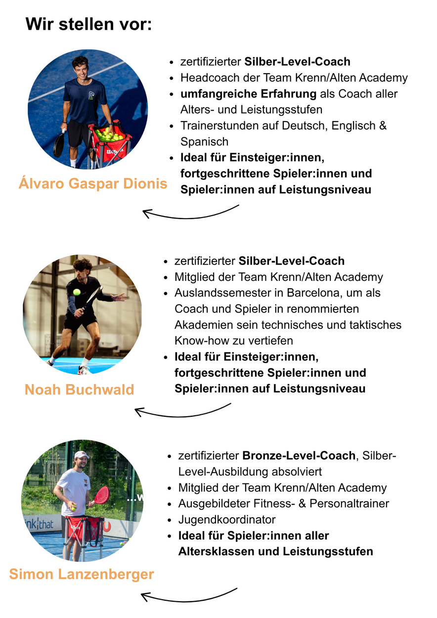 Die Padel Union Wien ist stolz darauf, ein engagiertes und kompetentes Trainerteam zu haben, das unsere Mitglieder optimal betreut und fördert.
