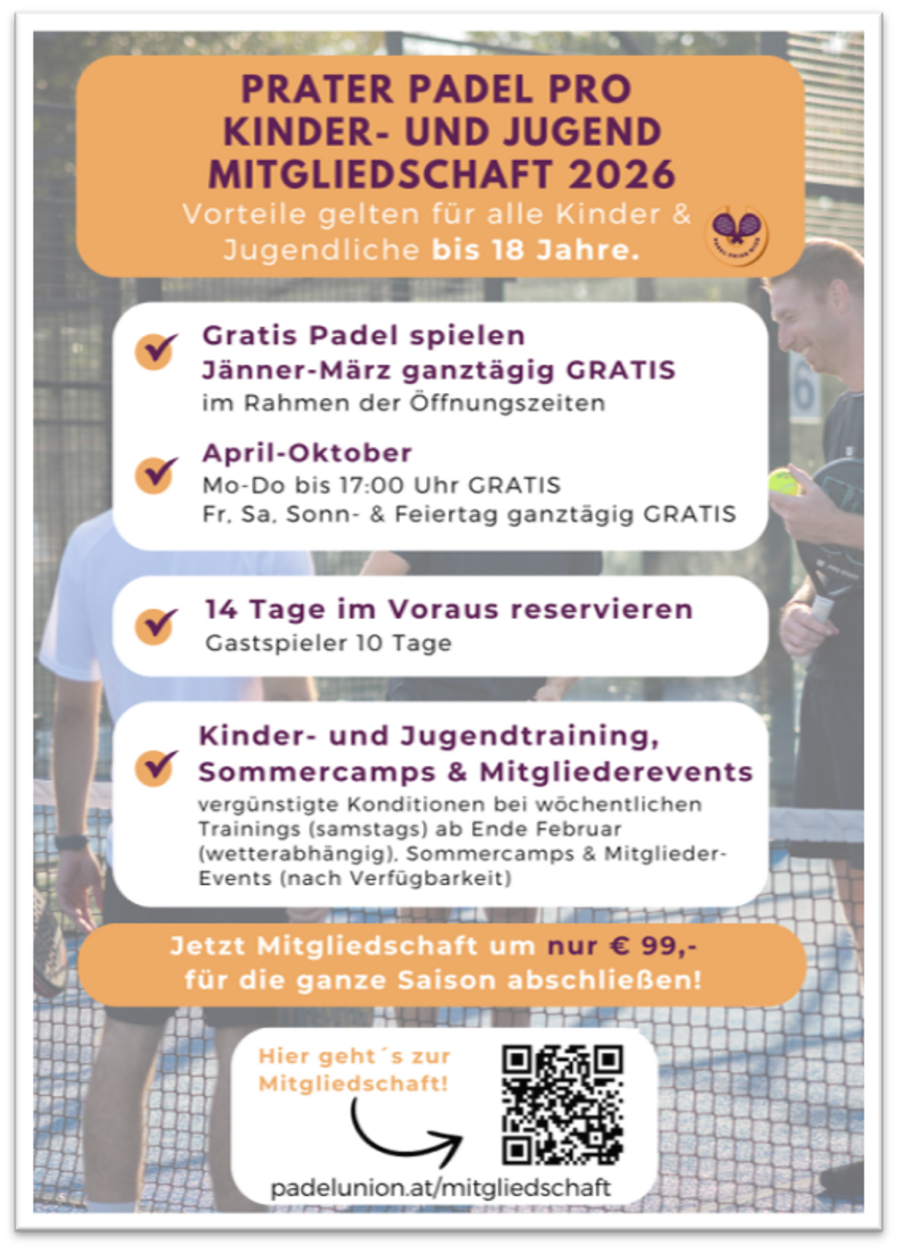 Kontakt per Mail an jugend@padelunion.at oder telefonisch unter +43 676 673 37 61