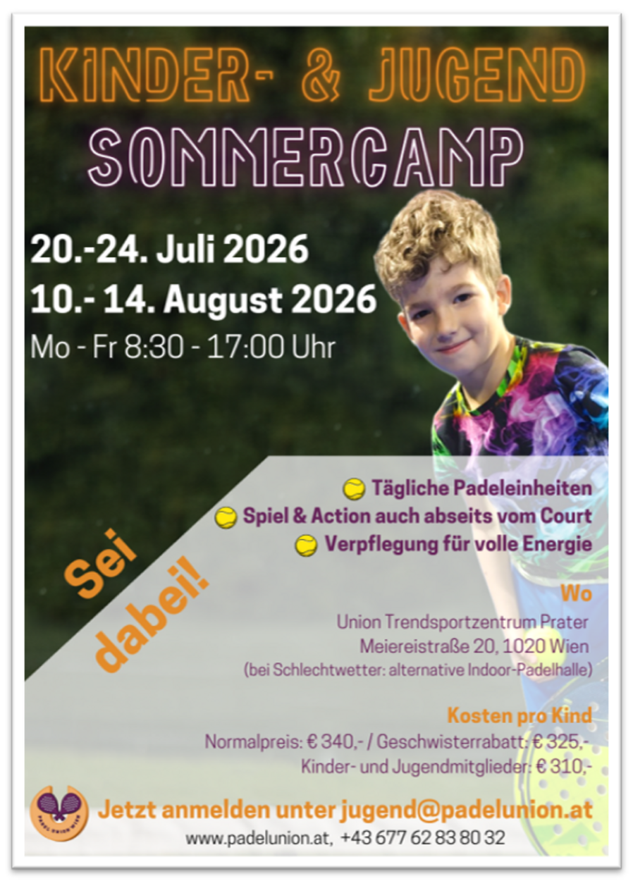 Jetzt fürs Sommercamp 2026 unter jugend@padelunion.at anmelden -> Anmeldeformular Kinder- und Jugendcamp 2026.pdf