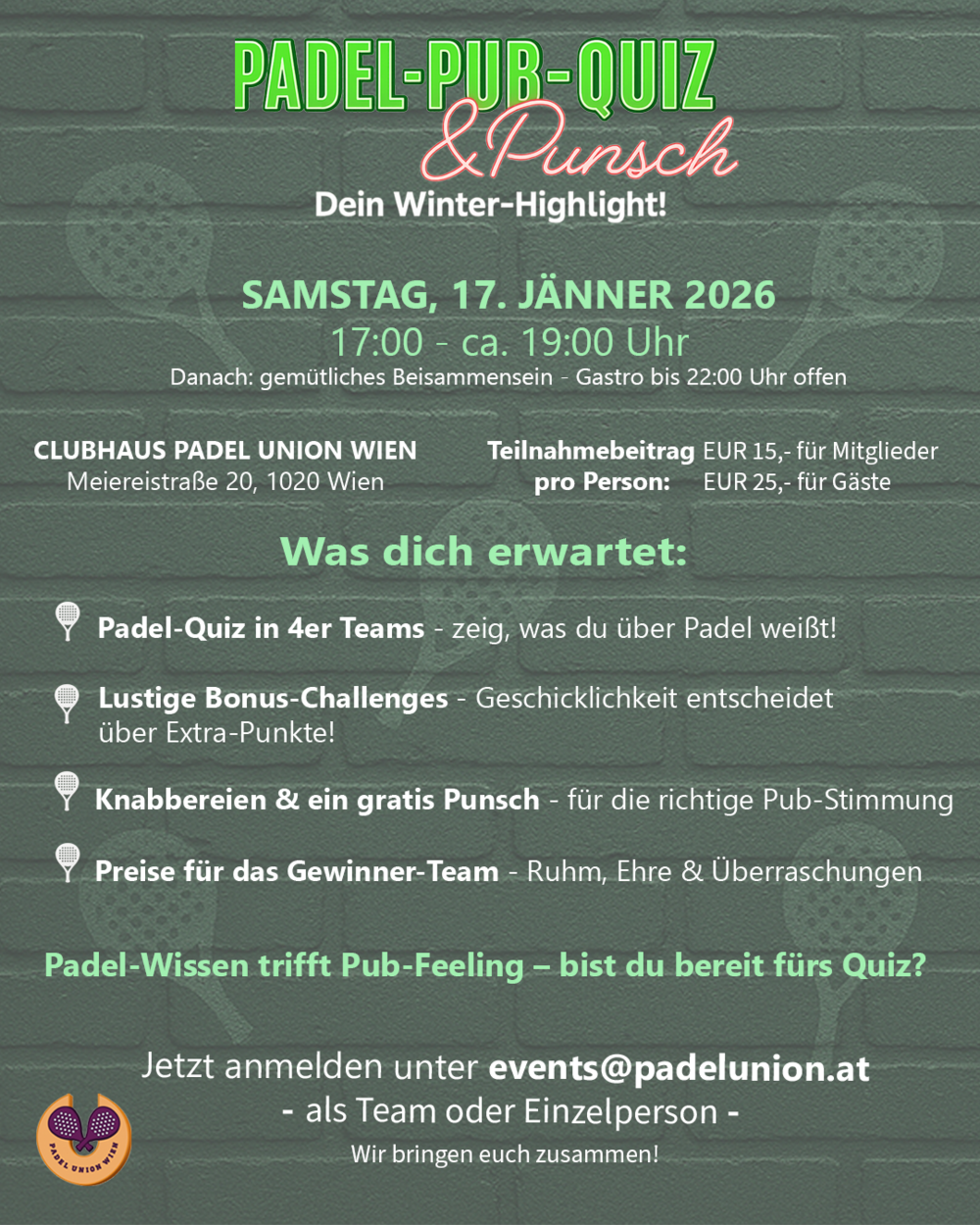 Das erste Event 2026 – Padel-Pub-Quiz & Punsch!